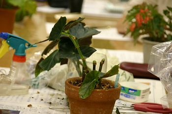今回、木立ベゴニアの秋の管理、木立ベゴニアの殖やし方ということで、持参していただいたベゴニアで実演が行われました。